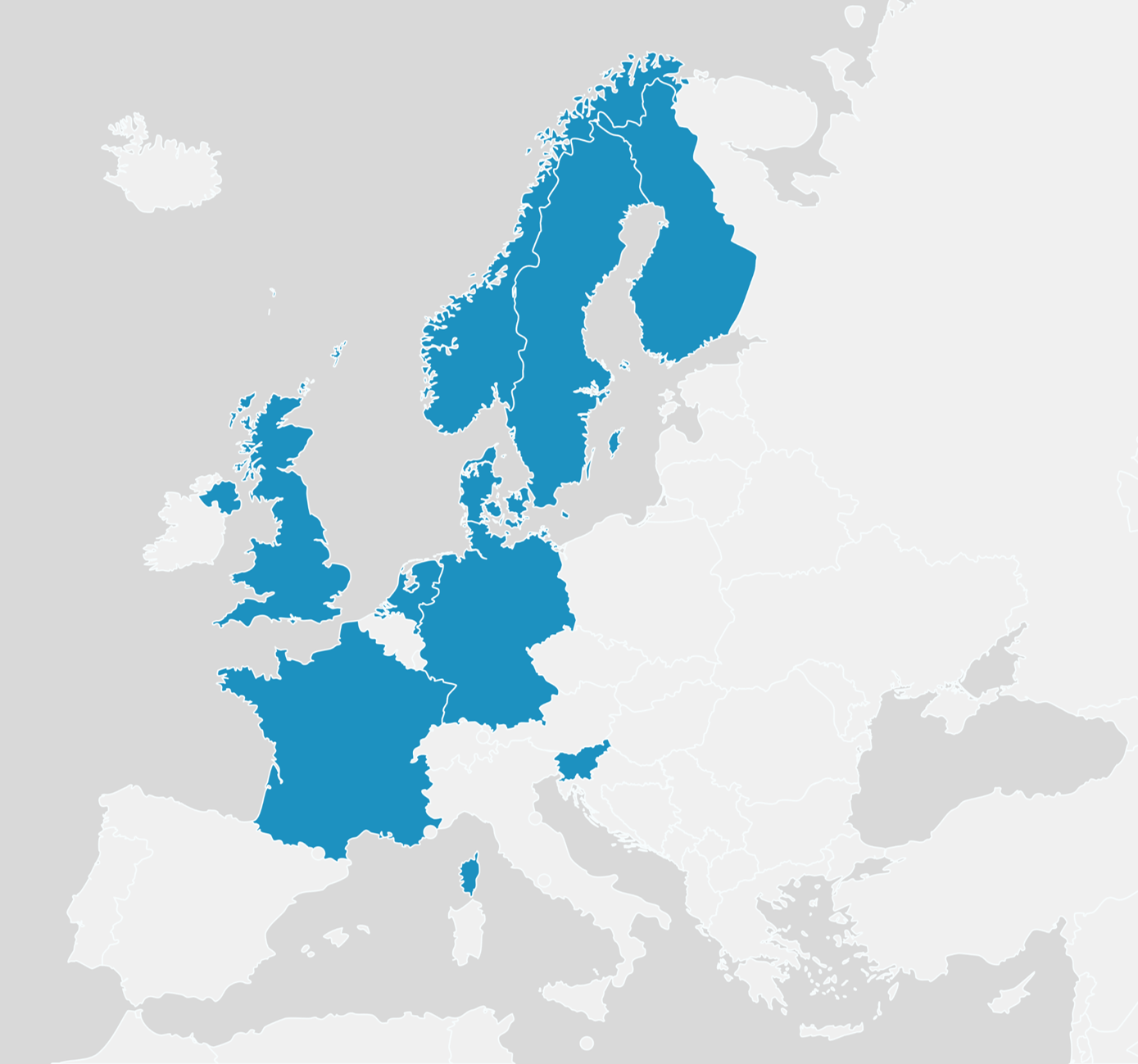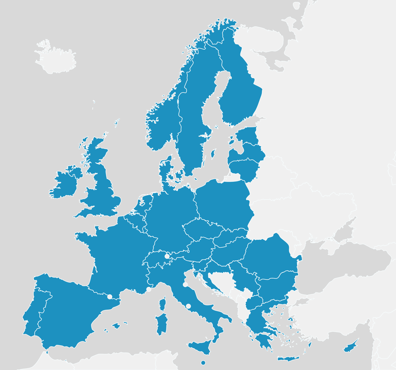 European countries covered by LGBTIQ+ datasets when two waves of the EU LGBT(I)Q Survey not considered