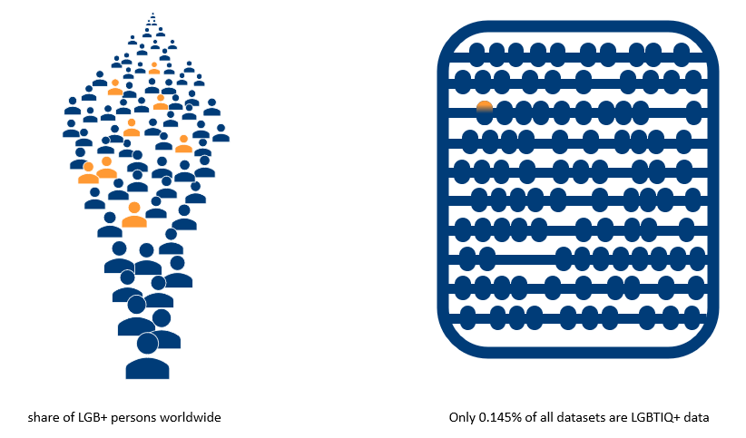 Fig.2: Share of LGB+ persons worldwide & Only 0.145% of all datasets are LGBTIQ+ data